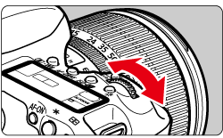3.注視液晶顯示屏的同時,轉動 < 主撥盤 > 選擇自動對焦模式。