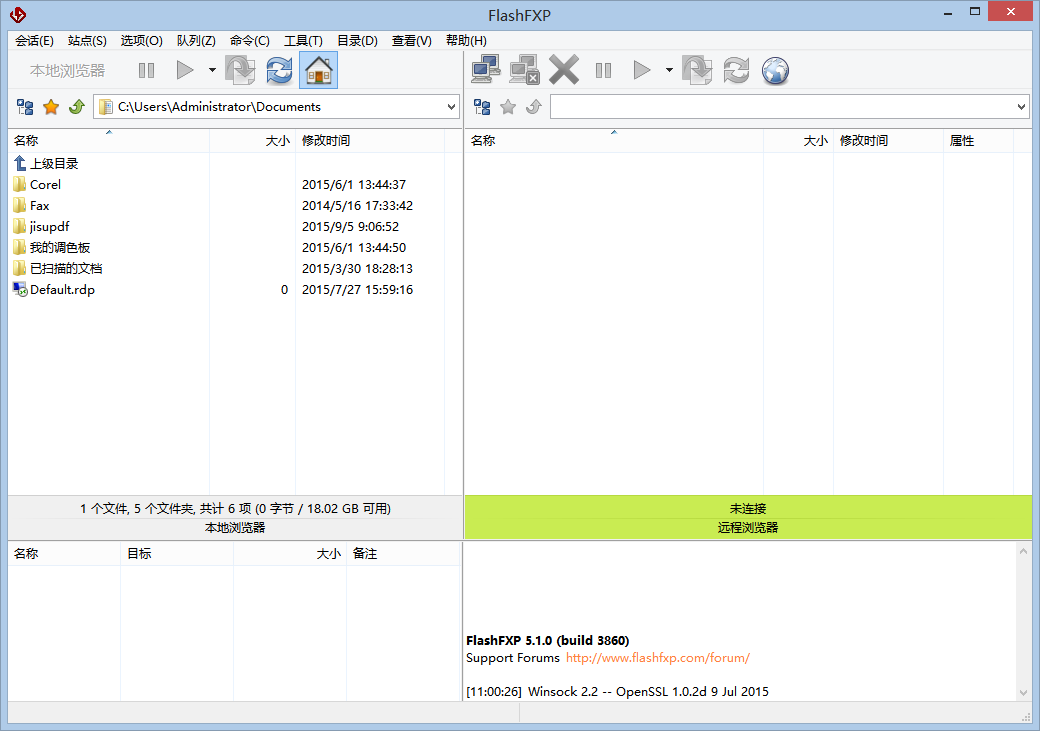 1、打開FlashFXP軟件后,我們可以看到左邊是電腦本地硬盤文件夾目錄,右邊是FTP服務器目錄: