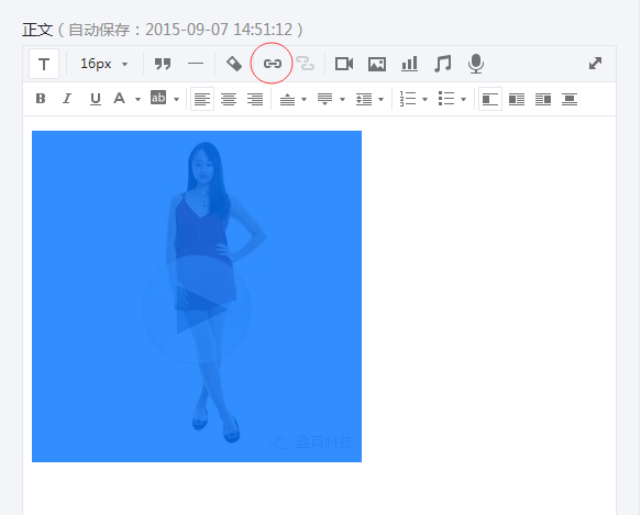 接著點(diǎn)擊該圖片,會顯示藍(lán)色,這時再點(diǎn)擊超鏈接按鈕(紅圈位置)
